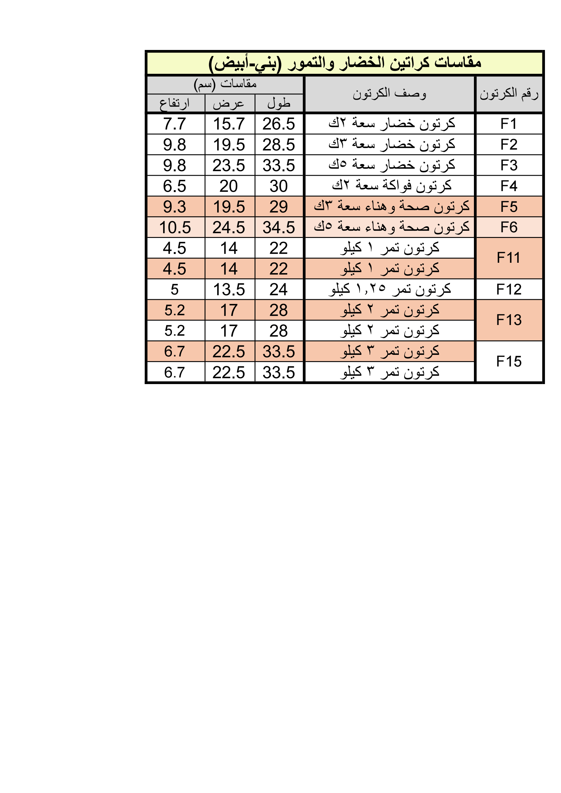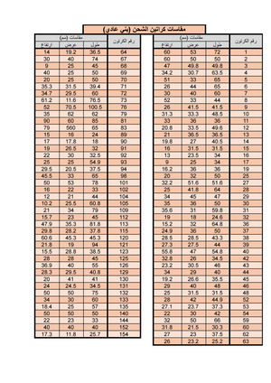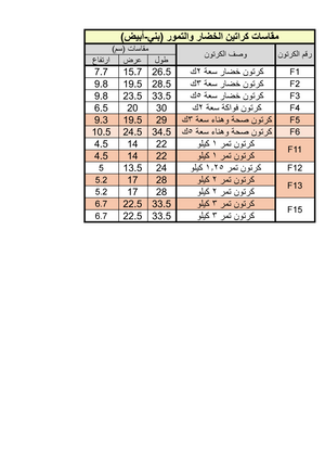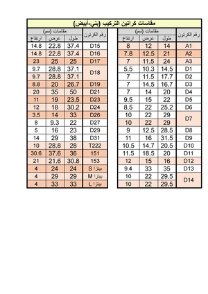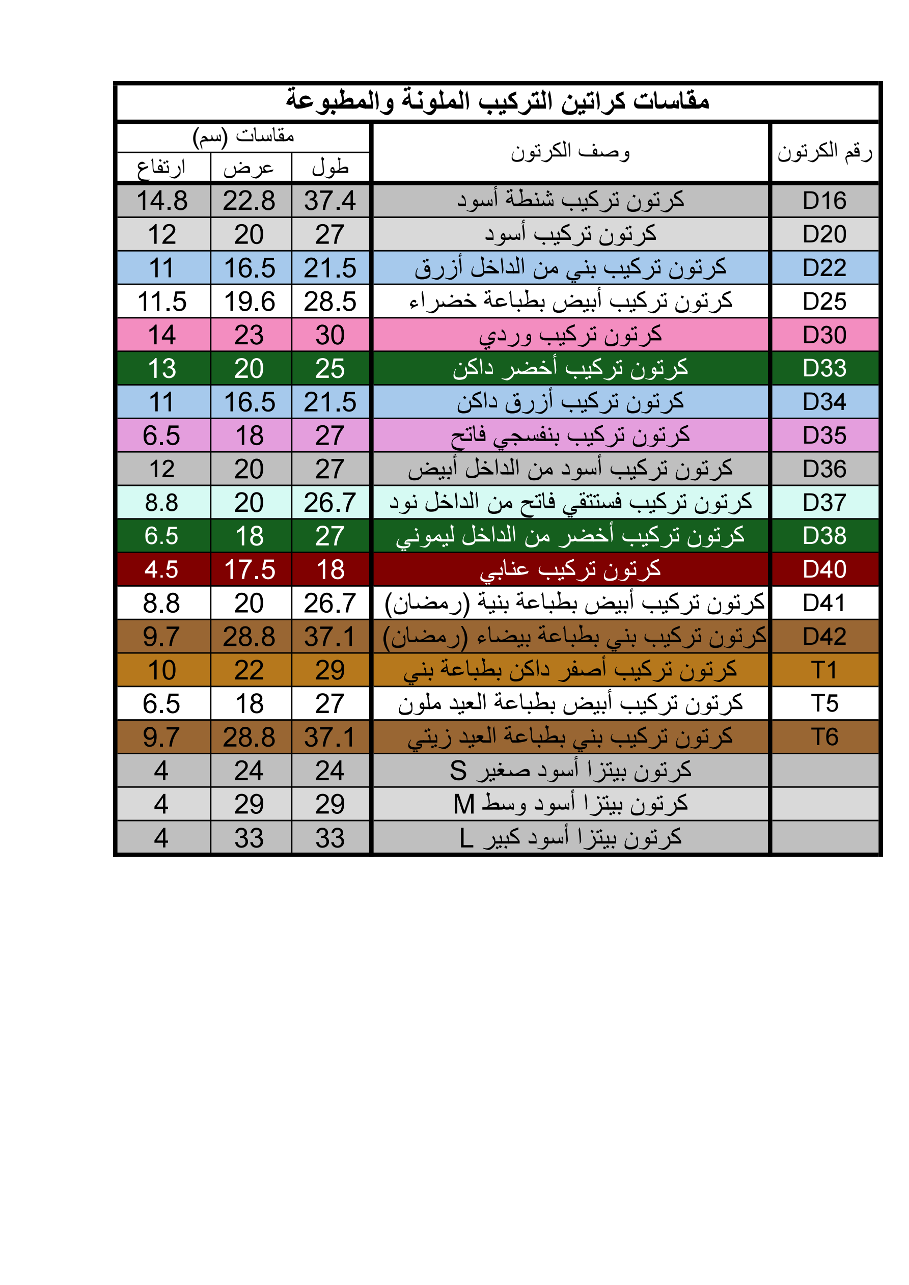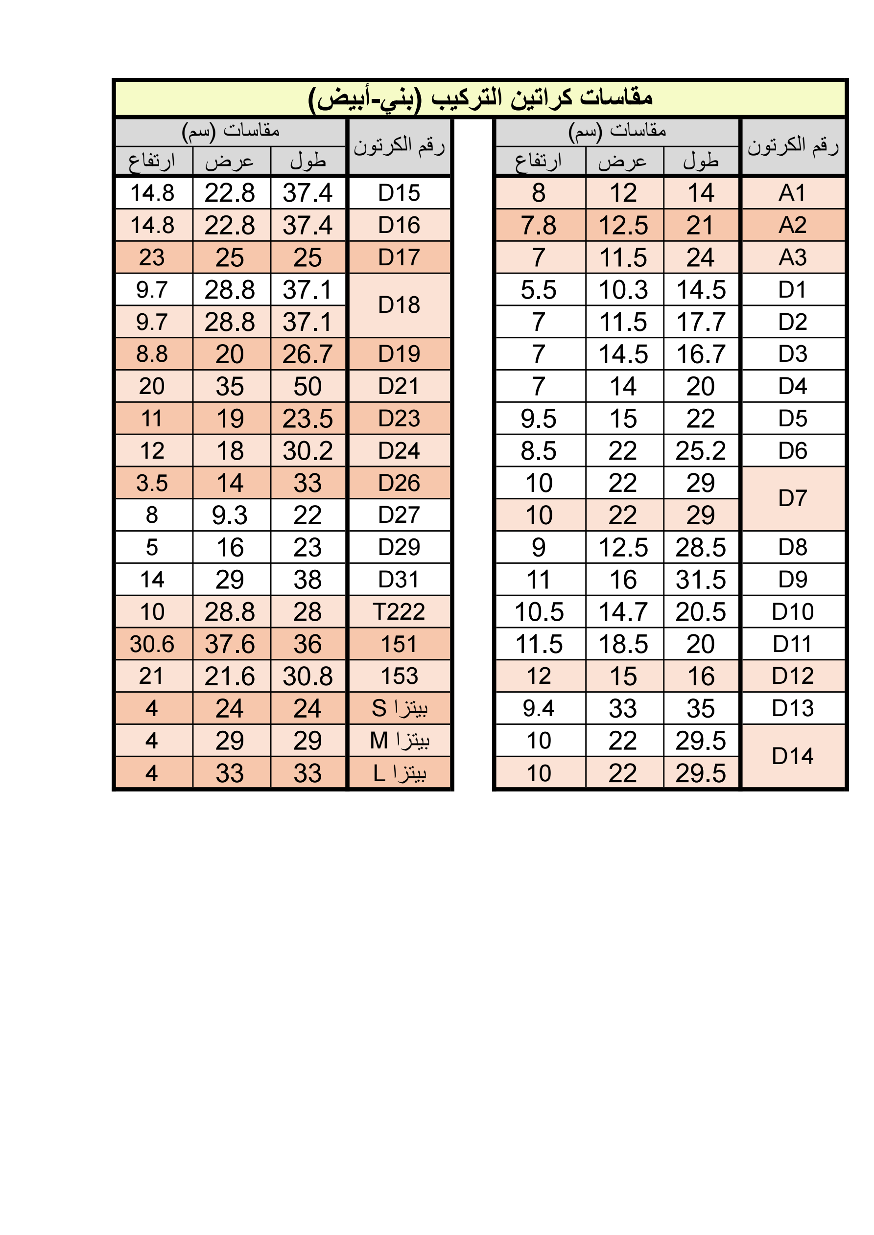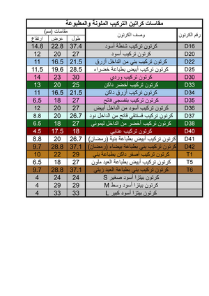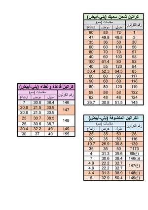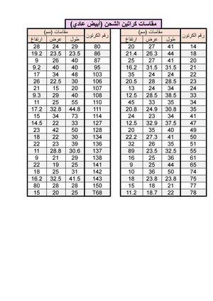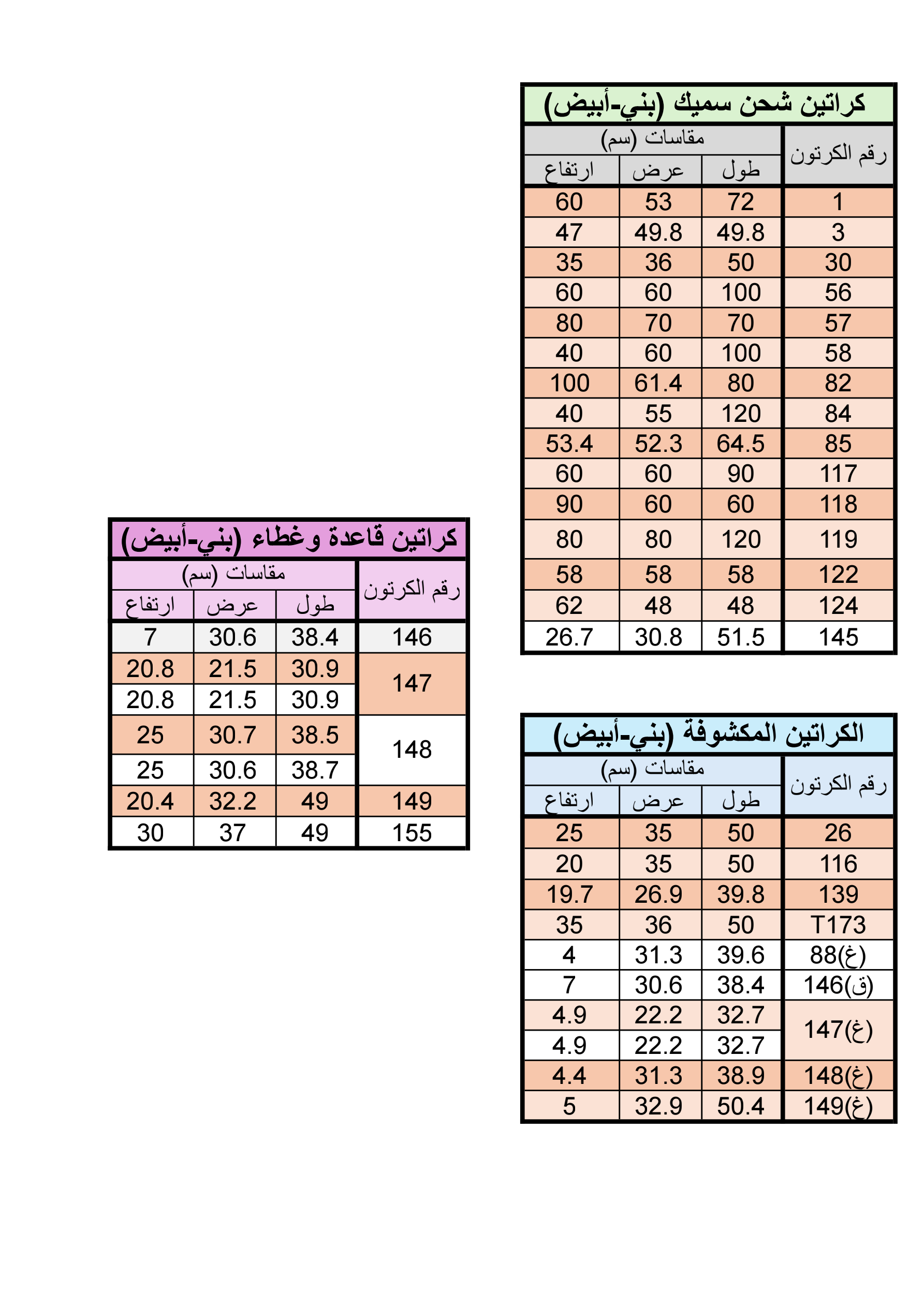 This section contains tables showing the size of each type of carton available on the site with its number. Not available for sale.